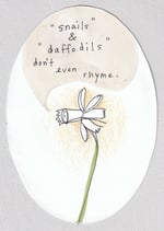 Zine, 5 1/4" x 4", 12 pages. Laser-printed from original drawings, handmade paper cover, pamplet-stitched with yellow thread.
